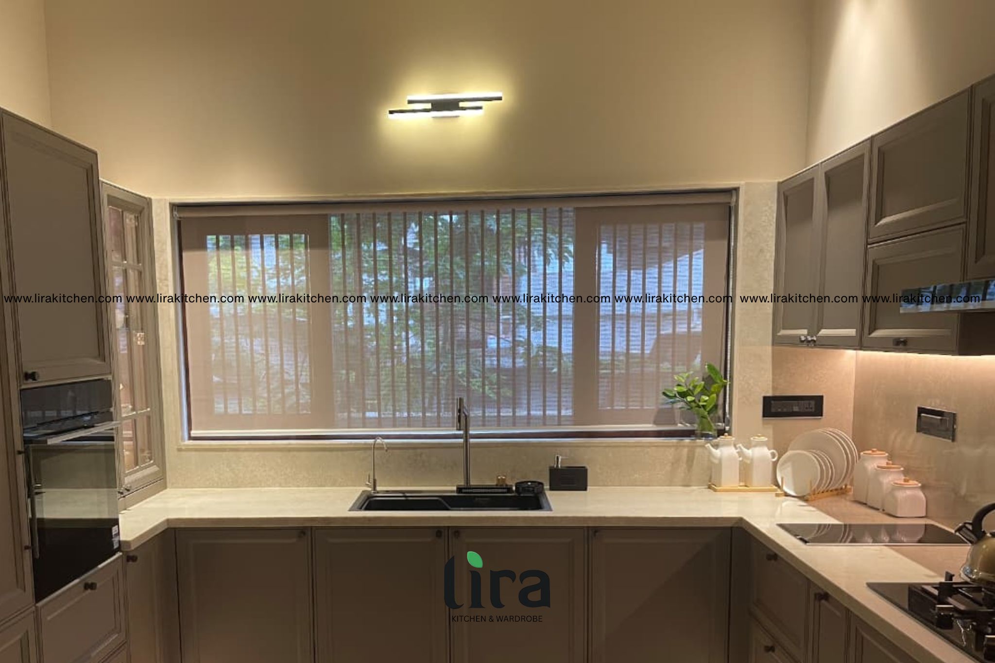 Sliding doors function by sliding on a track; therefore, there is no need for any extra space for their opening. It not only increases the perception of the kitchen but also makes it less congested, particularly in compact flats. Sliding doors, in consideration with modular kitchen cabinets, make the entire kitchen appear tidy, accessible, and spacious.